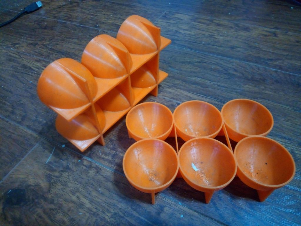 Clockwise: Replacement stove knob, heavy duty egg carton, greenhouse roller prototype with bearings, custom key chain, chevy windshield wiper linkage replacement.